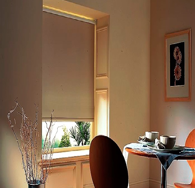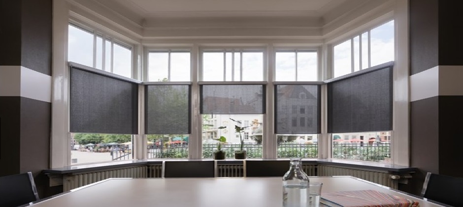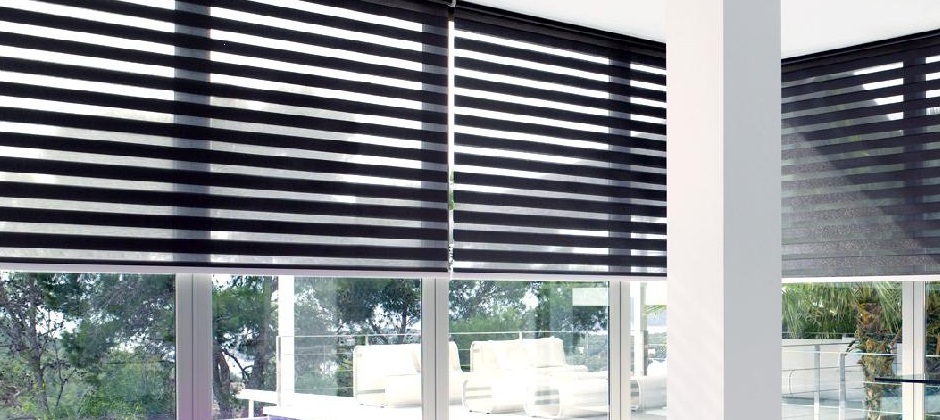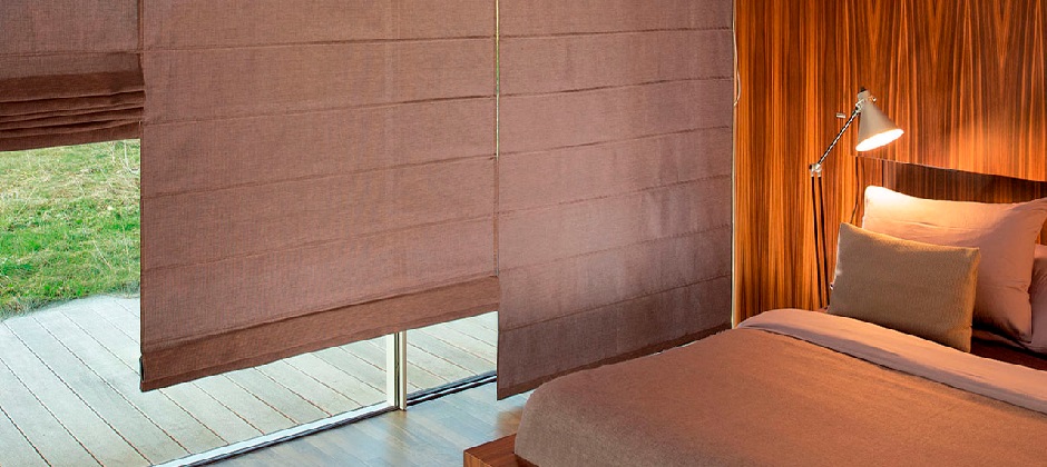 Combinación de persianas Romana, Sheer y Enrollable.